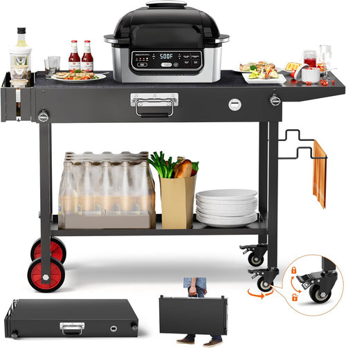 All-Terrain Wheels with Brake:360° wide silent-bearing wheels, glides on gravel, sand, grass, mud; built-in brakes for secure parking.