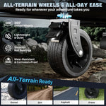 - 【All-Terrain Wheels with Brakes – Smooth & Secure】 Outfitted with big wheels for sand and 360° rotation, this beach cart with big wheels for sand glides over gravel, grass, or pavement with ease. Steel bearings ensure a smooth ride, and the built-in brakes provide safe stops even on slopes.