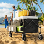 - 【All-Purpose Beach & Garden Cart – Foldable & Reliable】 From beach wagons with big wheels for sand to garden carts on wheels, this collapsible beach wagon handles it all. Ideal for festivals, tailgates, markets, or park picnics—folds compactly to fit in your trunk for on-the-go convenience.